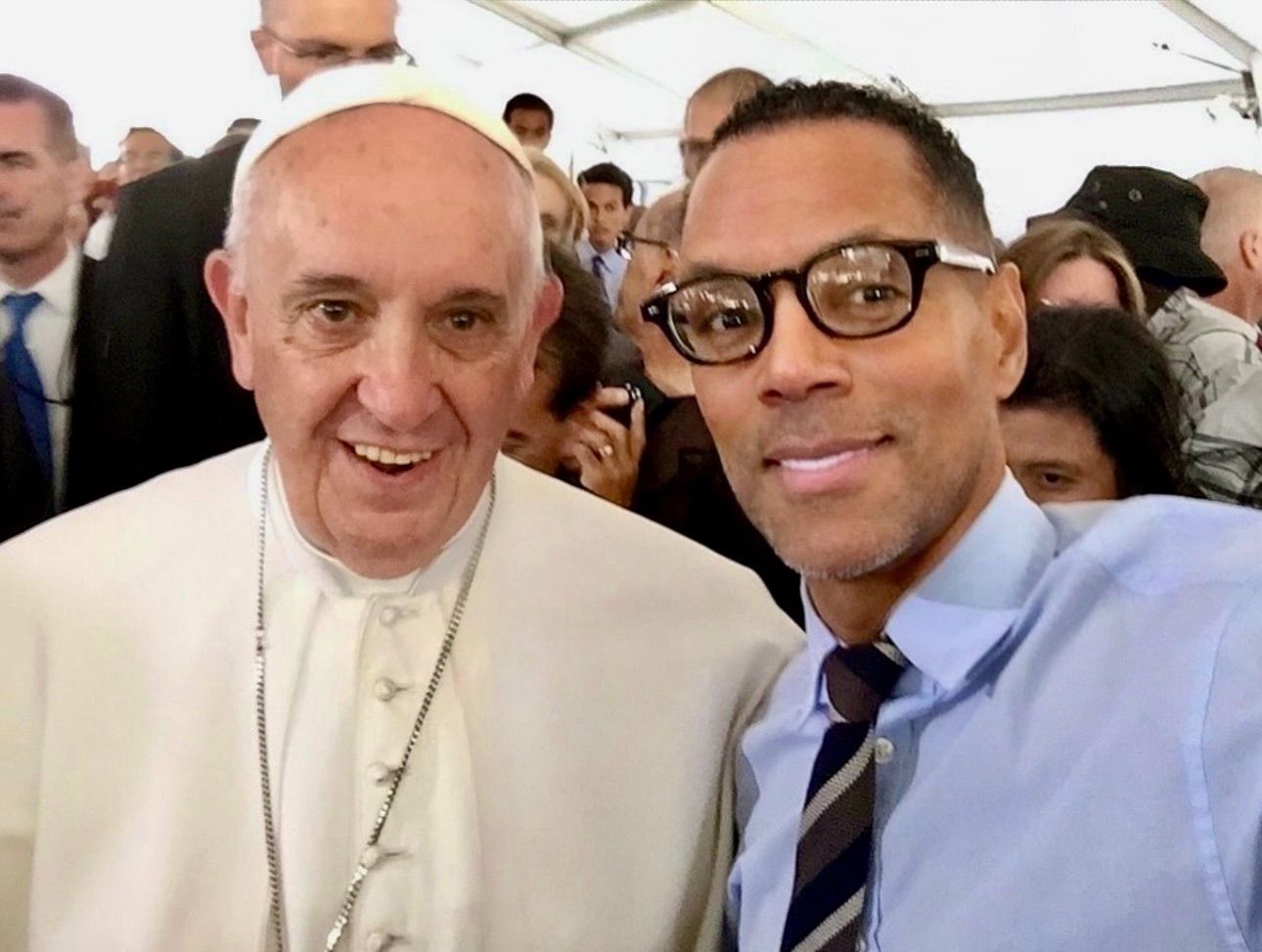 A selfie for the memory books: Pope Francis and Tony Powell in 2015